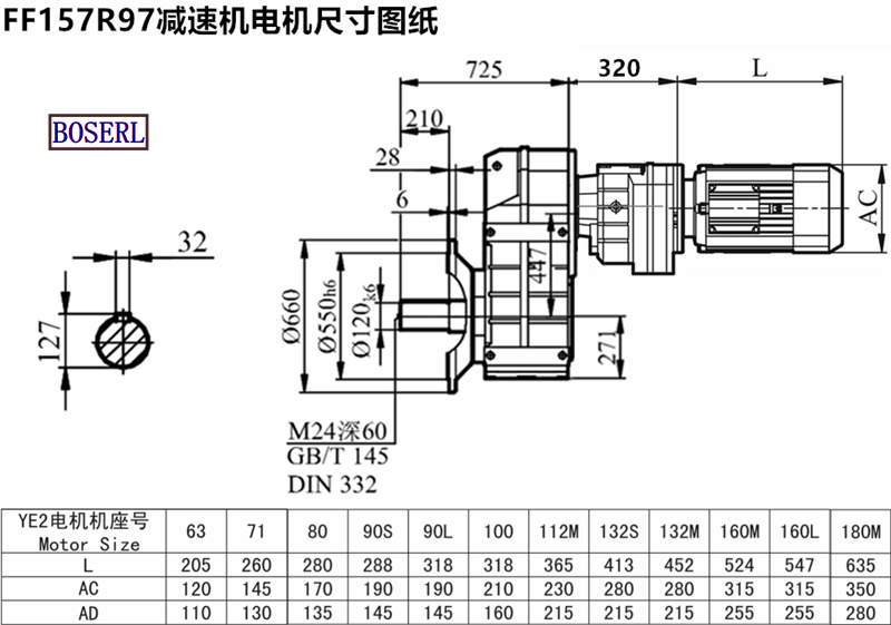 FF157R97DM132S4減速機電動機安裝尺寸圖紙