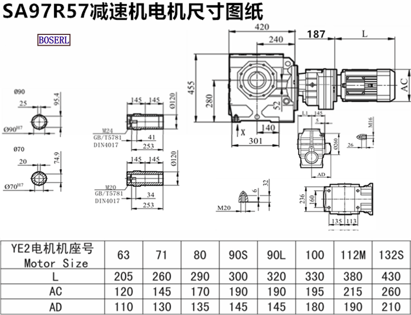 SA97R57DM90L4電機(jī)減速器安裝尺寸圖紙