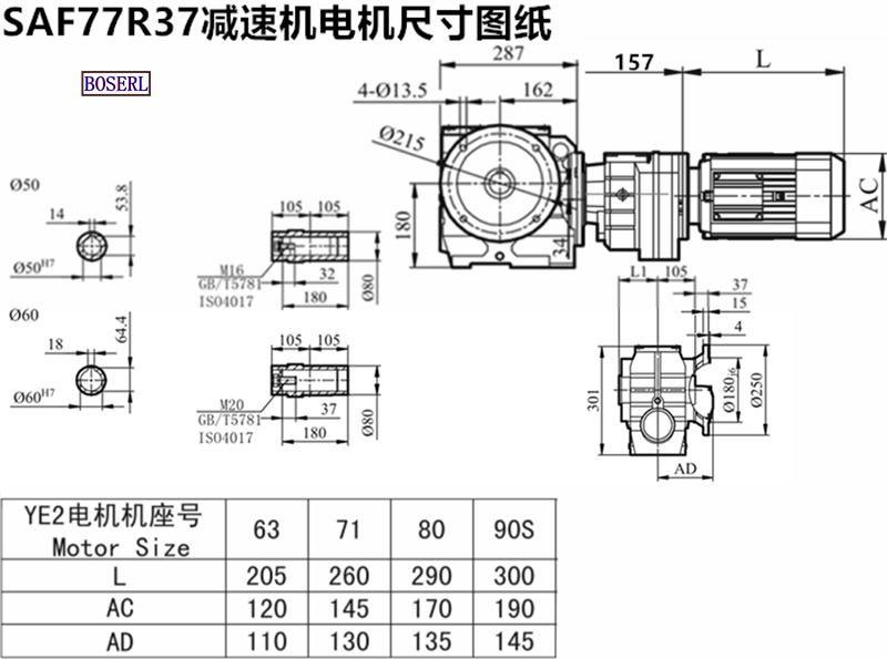 SAF77RF37-Y0.18KW電機減速器安裝尺寸圖紙